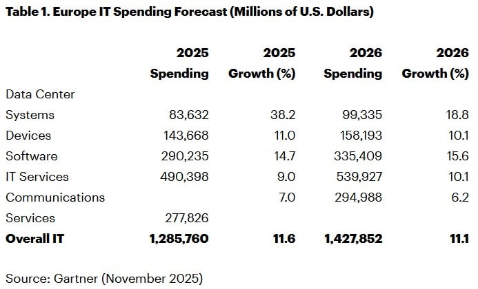 Selon les dernières estimations de Gartner, les dépenses IT en Europe augmenteront de 11,1% en 2026 pour atteindre 1.400 milliards de dollars. Cette progression serait largement stimulée par l’essor de l’intelligence artificielle (IA), du cloud et de la cybersécurité.