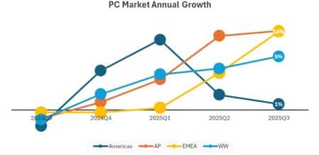 « Alors que l’ensemble du marché poursuit une année très dynamique, portée par la transition vers Windows 11 et la nécessité de remplacer une base installée vieillissante, les résultats par région révèlent des résultats différents », observe toutefois Jean-Philippe Bouchard, analyste chez IDC.