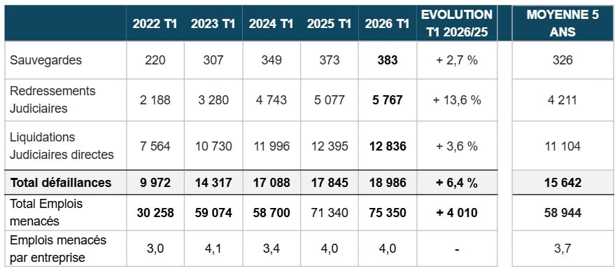 Selon la dernière étude du groupe Altares sur les défaillances et sauvegardes d’entreprise, le secteur des technologies de l’information et de la communication a limité la casse au premier trimestre 2026. Alors que le nombre total de défaillances d’entreprises a progressé de plus de 6% en France, à 18 986 procédures ouvertes, la branche TIC a quasiment stabilisé la situation, avec une hausse limitée à 1%. Sur douze mois glissants, le pays dépasse désormais 71 000 défaillances, un niveau inédit.