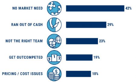 Ce constat pas trop surprenant est le résultat d’une enquête réalisée par le cabinet CB Insights et présentée dans un rapport « “What are the reasons startups fail? »